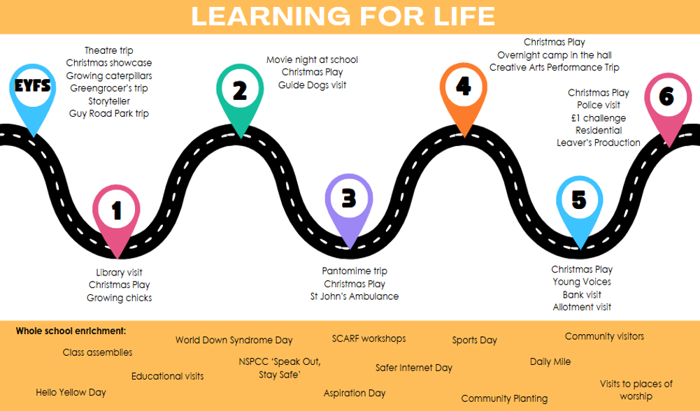 At St John’s, we are committed to promoting a holistic approach to education that recognises the interconnectedness of a child’s physical, cognitive, social and emotional development, alongside their academic achievement. With this in mind, please see below our Learning for Life enrichment offer for each year group. These opportunities are designed to provide children with a wide range of experiences that nurture the whole child, build life skills, and prepare them positively for later life. To support every child’s journey at St John’s, we have planned enriching experiences in every year group, including educational visits and visitors.